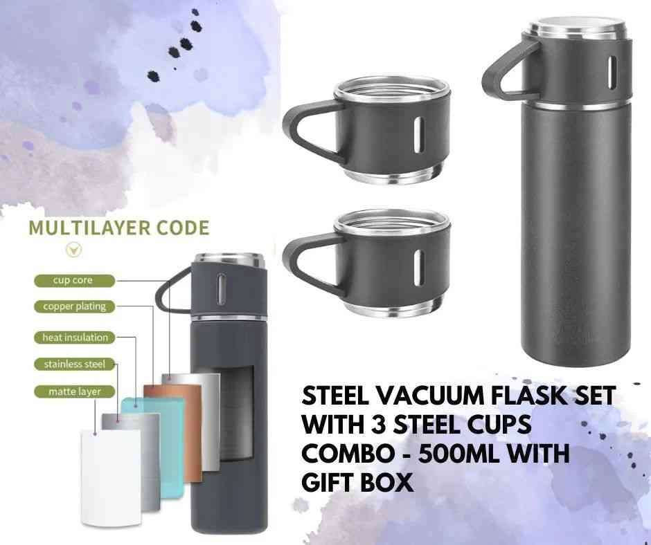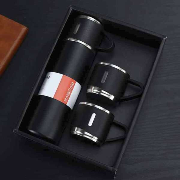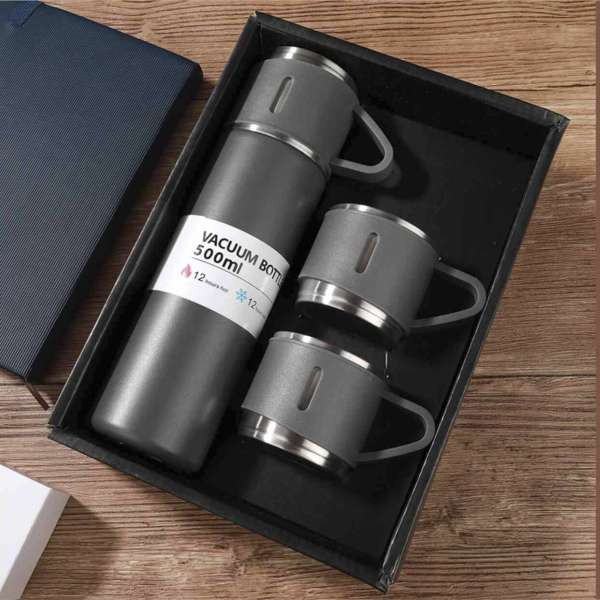 - Vacuum Insulated Bottle or Vacuum Flask in 500ml with Cup Cover plus 2 extra Stainless Cups in a Gift Box (3cups).