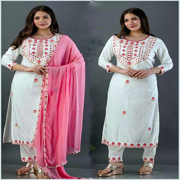Fabric : China lilen, Ambrotari work kora + shik print