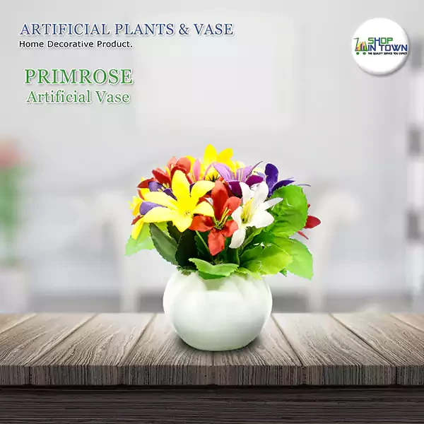 • Design: An artificial primrose vase features lifelike primrose flowers arranged in a decorative container. Primroses are known for their vibrant, cheerful blooms, and the artificial versions are designed to capture this beauty with realistic details.